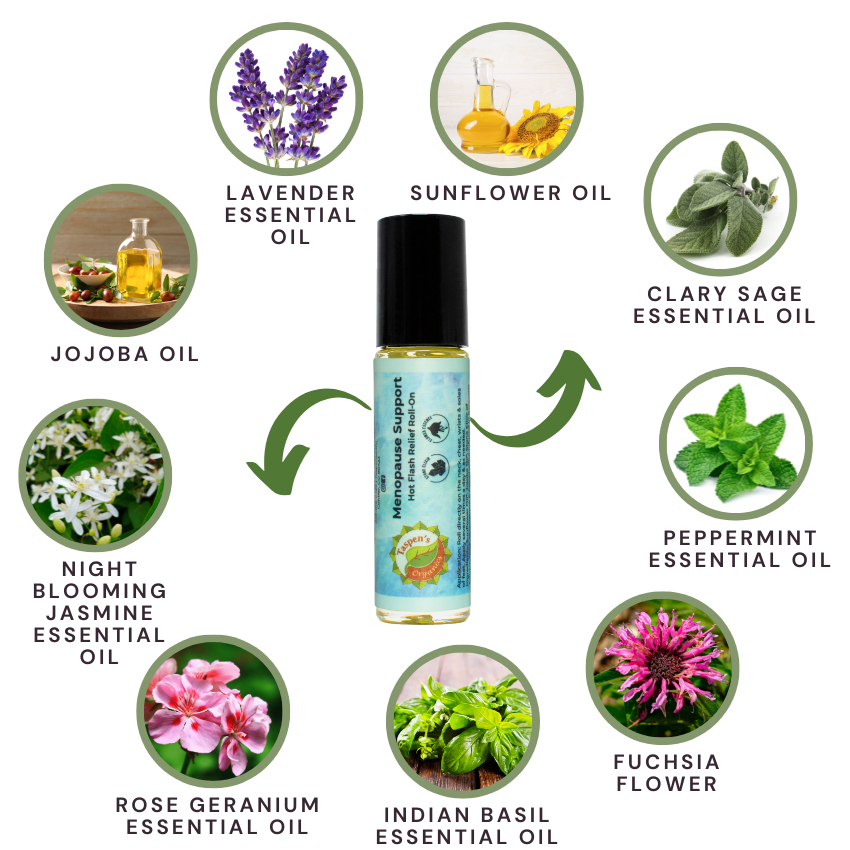 Supportive for menopausal women and the symptoms that accompany this transformational life phase to encourage grace, balance & awareness. Use this blend to get relief from hot flashes, move energy, bring harmony into your natural flow of life, & support mental & emotional well-being.