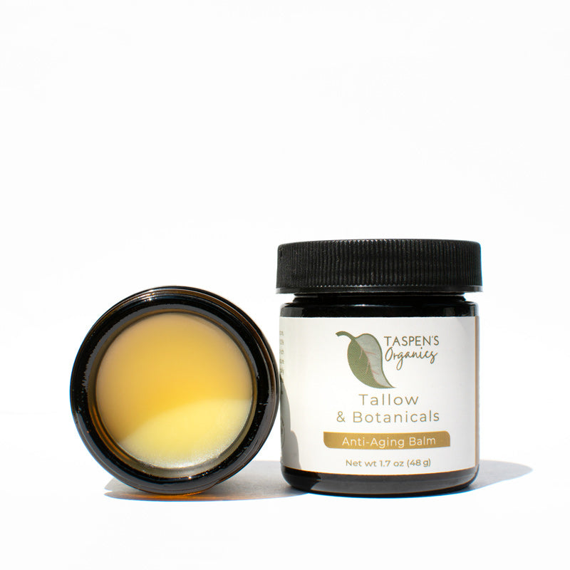 Melt a small amount of the Tallow & Botanicals Anti-Aging Balm between your fingertips. Gently massage into your face and neck until skin feels soft, hydrated, and nourished. A little goes a long way!